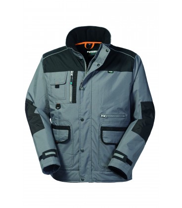 Giubbotto multitasche, in poliestere Mini Ripstop, interno imbottito, cappuccio a scomparsa, una tasca al petto chiusa da patta e velcro, una tasca al petto chiusa con zip, due tasche in vita chiuse con patta e velcro e una tasca interna. Chiusura centrale con zip coperta da patta e bottoni a pressione, polsi con elastico e regolabili con velcro, profili rifrangenti e travette di colore a contrasto.