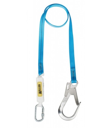 Cordino a nastro con assorbitore di energia lunghezza 2 m con moschettone a vite gancio per ponteggio (apertura 65 mm)